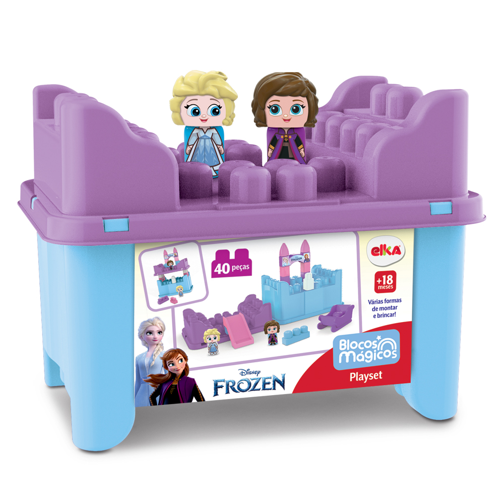 Crie momentos mágicos com Elsa e Ana! Com esse playset dos blocos de montar inspirados em Frozen, as crianças embarcam em aventuras únicas enquanto desenvolvem criatividade e coordenação motora! São 40 peças, dentre elas algumas especiais para compor histórias e estreitar laços entre pais e filhos.